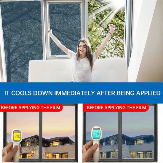Bescherm je huis tegen hitte, uv-straling en nieuwsgierige blikken met deze hoogwaardige spiegelfolie raamfolie. Ideaal voor binnengebruik en eenvoudig zelf aan te brengen dankzij de zelfklevende laag.