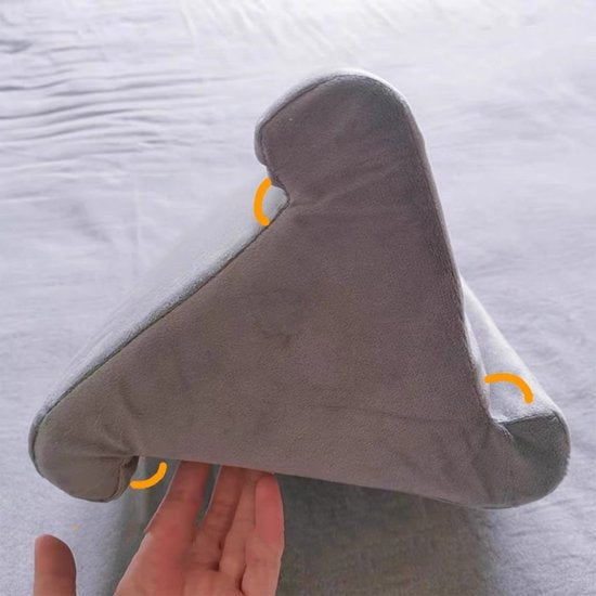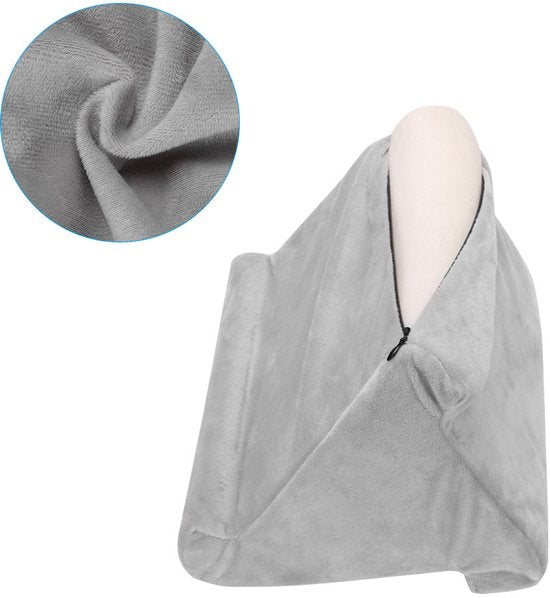 Maak het jezelf makkelijk met dit tablet kussen in stijlvol grijs. Of je nu een tablet, e-reader, smartphone of boek gebruikt, dit multifunctionele kussen biedt altijd de perfecte kijkhoek dankzij de 3 verstelbare zijden. Geschikt voor op de bank, in bed of onderweg!