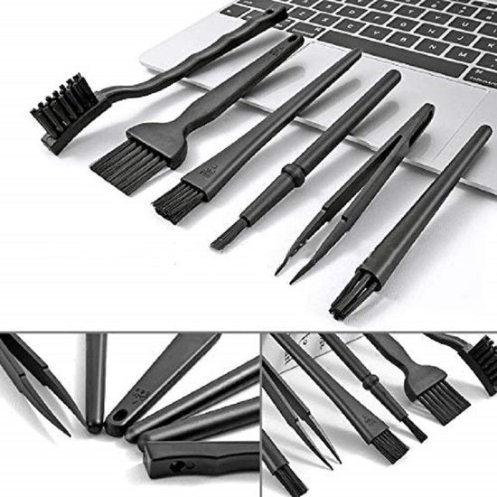 De set bevat 5 antistatische bostels en 1 klein pincet.