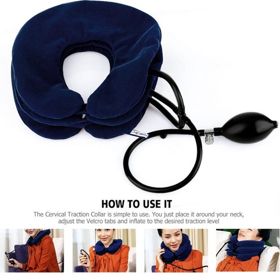 Draag het draagbare cervicale wervelkolomapparaat op de juiste manier. De eerste gebruiker kan het dragen volgens de spiegel, de maat van de nekomtrek aanpassen.