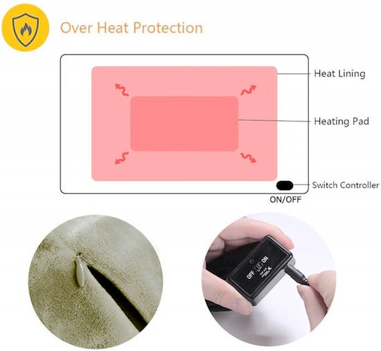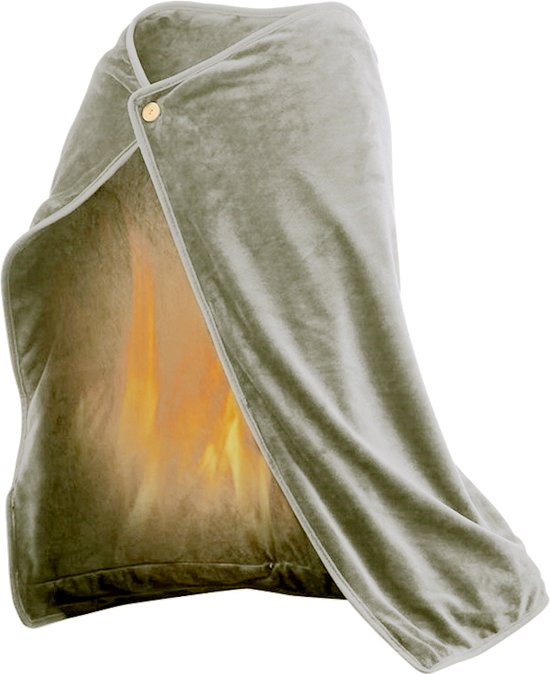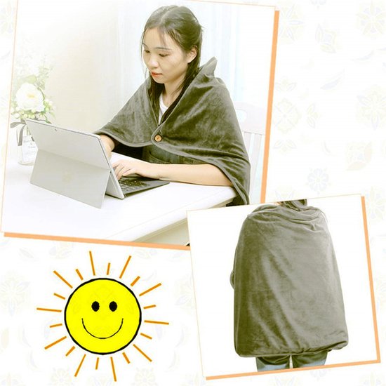 TDR - Elektrische verwarmingsdeken in poncho-vorm met USB-aansluiting - van zachte flanellen stof - Grijs