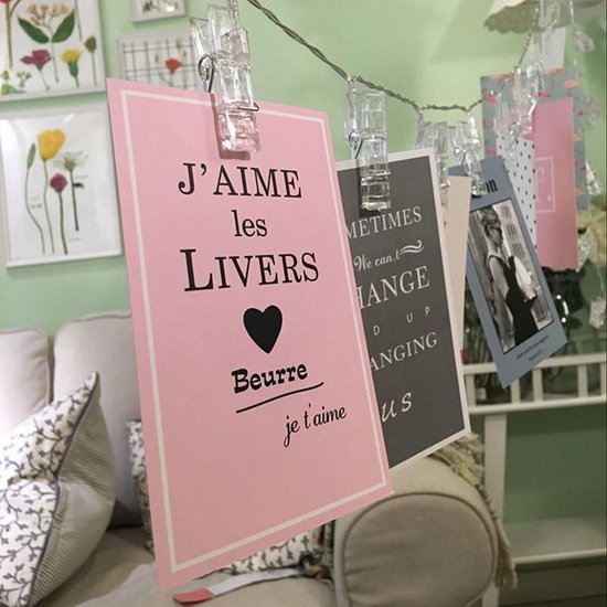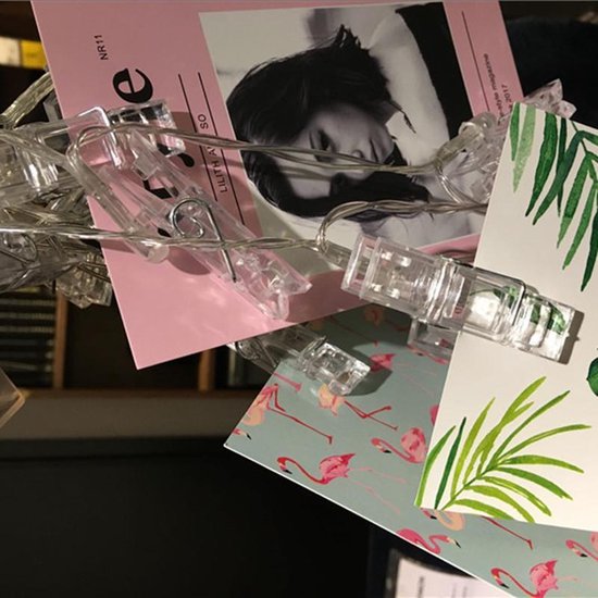 - [Speciale herinneringen opnemen] Deze warme snoerlampen zijn een briljant idee voor het ophangen van familiefoto's/kerstkaarten/memo's/notities/kindertekeningen en foto's. Een leuke decoratie voor je slaapkamermuur, bruiloften, Valentijnsdag, feest, pub, concert, modeshow, etalage, enz.