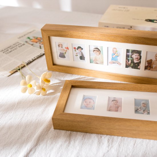 Perfect voor babyfoto's in zakformaat. Je kunt het op de kast zetten om de groei van je baby te laten zien.