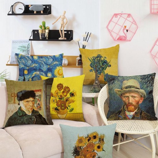 Sierkussensloop katoen/linnen 45x45 cm van Gogh zonnebloemen