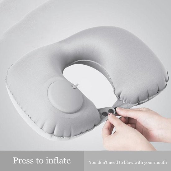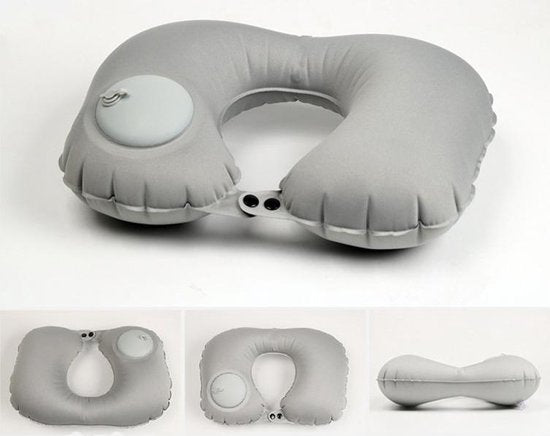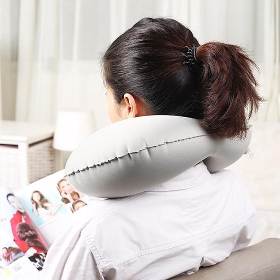 TDR U-vormig Nekkussen - Zelfopblaasbaar Reiskussen - Grijs