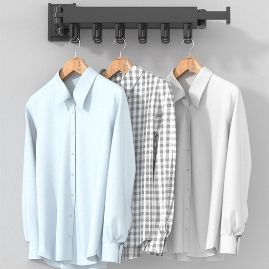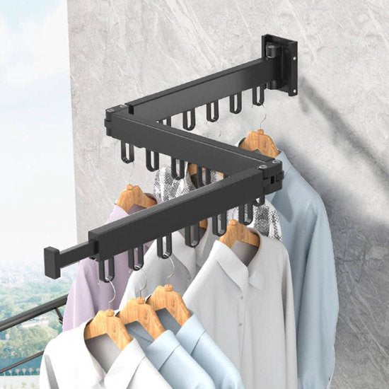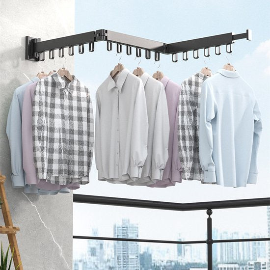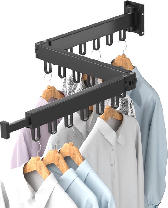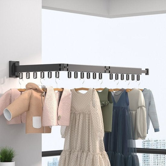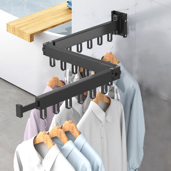 Uittrekbaar Wanddroogrek - Robuust en Ruimtebesparend - Hoge Draagkracht - Handig Wasrek Hangend aan de Muur-zwart
