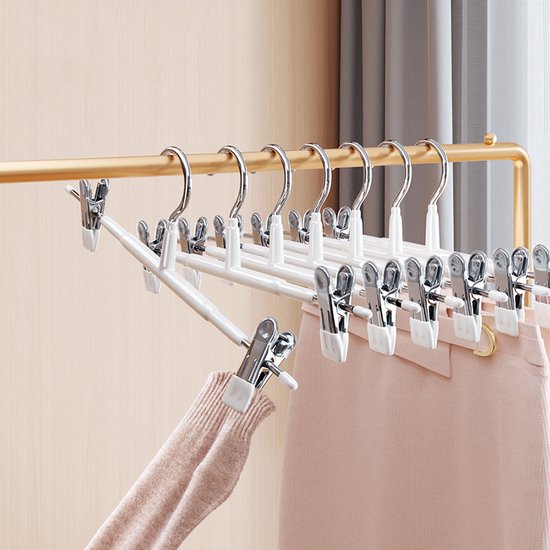 Verrijk uw garderobe met deze set van 10 Unikorf klemhangers, ontworpen voor een moderne en georganiseerde kledingopslag. Deze hangers, gemaakt van stevig plastic met metalen clips, bieden een betrouwbare grip voor broeken, rokken en sokken, zodat uw kleding netjes en kreukvrij blijft. De strakke witte afwerking en het minimalistische ontwerp passen perfect in elke kast of kleedkamer, van compact tot ruim.