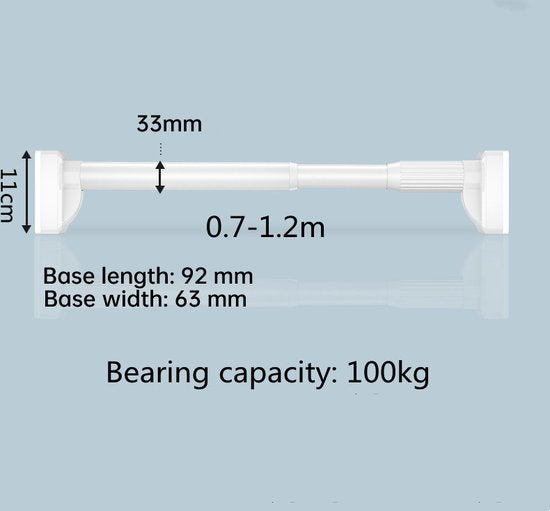 Eenvoudige Installatie: Geen boormachine of gereedschap nodig. Trek de stang uit tot de gewenste lengte en draai de fijne staaf vast. Draai daarna de verstelbare moer aan voor een stabiele bevestiging.