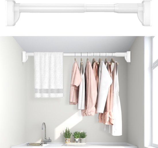 Met deze kledingstang kunt u eenvoudig en flexibel uw kleding en andere items ophangen zonder uw muren te beschadigen. De installatie is moeiteloos en de stang is ontworpen om jarenlang mee te gaan.