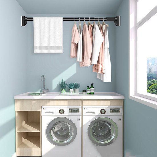 Met deze kledingstang kunt u eenvoudig en flexibel uw kleding en andere items ophangen zonder uw muren te beschadigen. De installatie is moeiteloos en de stang is ontworpen om jarenlang mee te gaan.