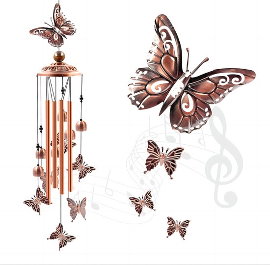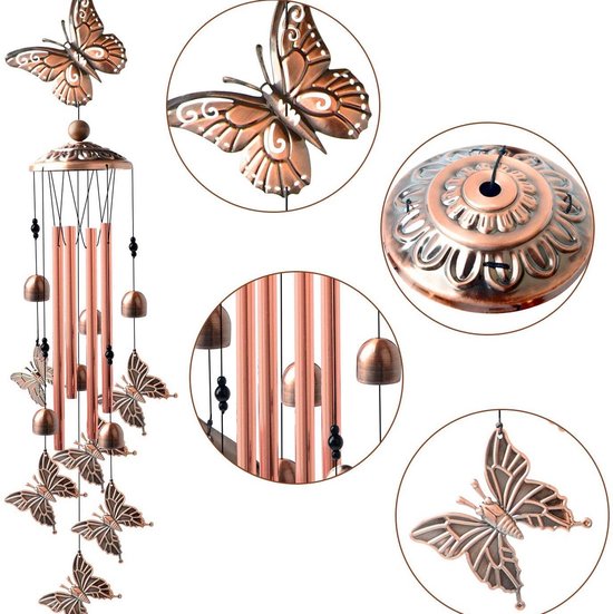 Geef uw tuin, balkon of interieur een vleugje elegante rust met deze vintage metalen windgong in een warme rode bronzen tint. De zorgvuldig vormgegeven vlindermotieven voegen een sierlijke charme toe, terwijl de zachte klanken van de windgong voor een kalmerende sfeer zorgen. Of u hem nu binnen of buiten ophangt, de weerbestendige constructie en hoogwaardige afwerking zorgen ervoor dat u lang van dit stijlvolle decoratiestuk kunt genieten.