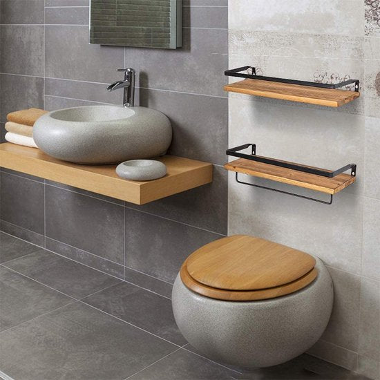 Deze wandgemonteerde wandrek is ideaal voor gebruik in badkamers en keukens. Hij is gemaakt van hoogwaardig dennenhout en heeft een strakke en moderne uitstraling. De plank heeft twee lagen, wat voldoende ruimte biedt voor het opbergen van verschillende items.
