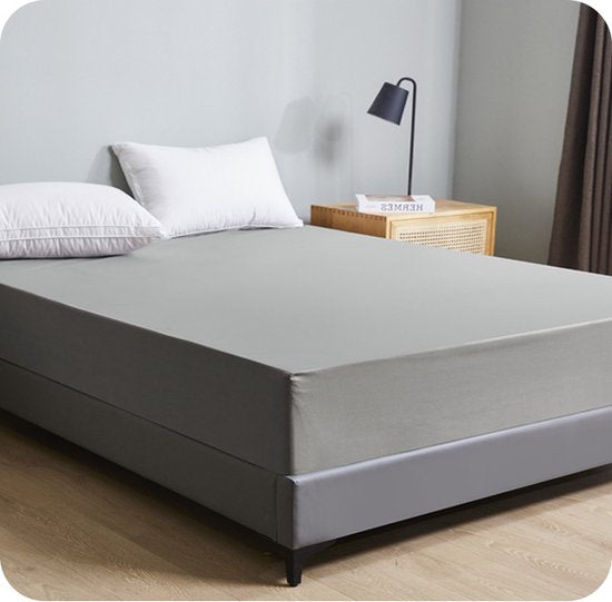 Bescherm je matras optimaal met deze waterdichte matrasbeschermer in grijs. Het waterdichte en ademende materiaal houdt je matras vrij van morsen, vlekken en allergenen, terwijl het zorgt voor een comfortabele en frisse slaapervaring. Dankzij de elastische randen past de beschermer perfect op matrassen van 160x200 cm tot 30 cm dik. Machinewasbaar, wat het onderhoud eenvoudig maakt.