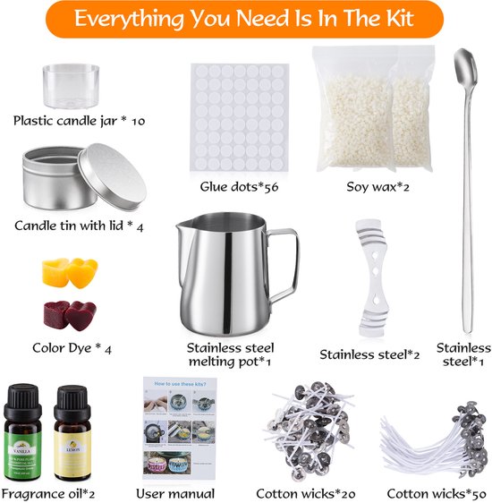 - Complete set met sojawax en hulpmaterialen, waardoor je direct aan de slag kunt zonder losse aankopen.